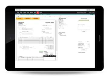 A week or two later an invoice arrives by mail and the accounting office uploads the invoice into the F3. The invoice & PO matching are handle automatically in the AP module and is reflected on the PO & PO Tracking tabs. Now our DPC enters the invoice detail, including the PO number indicated on the invoice. The invoice is now put through the approval cycle in the same way as the PO was a week earlier.